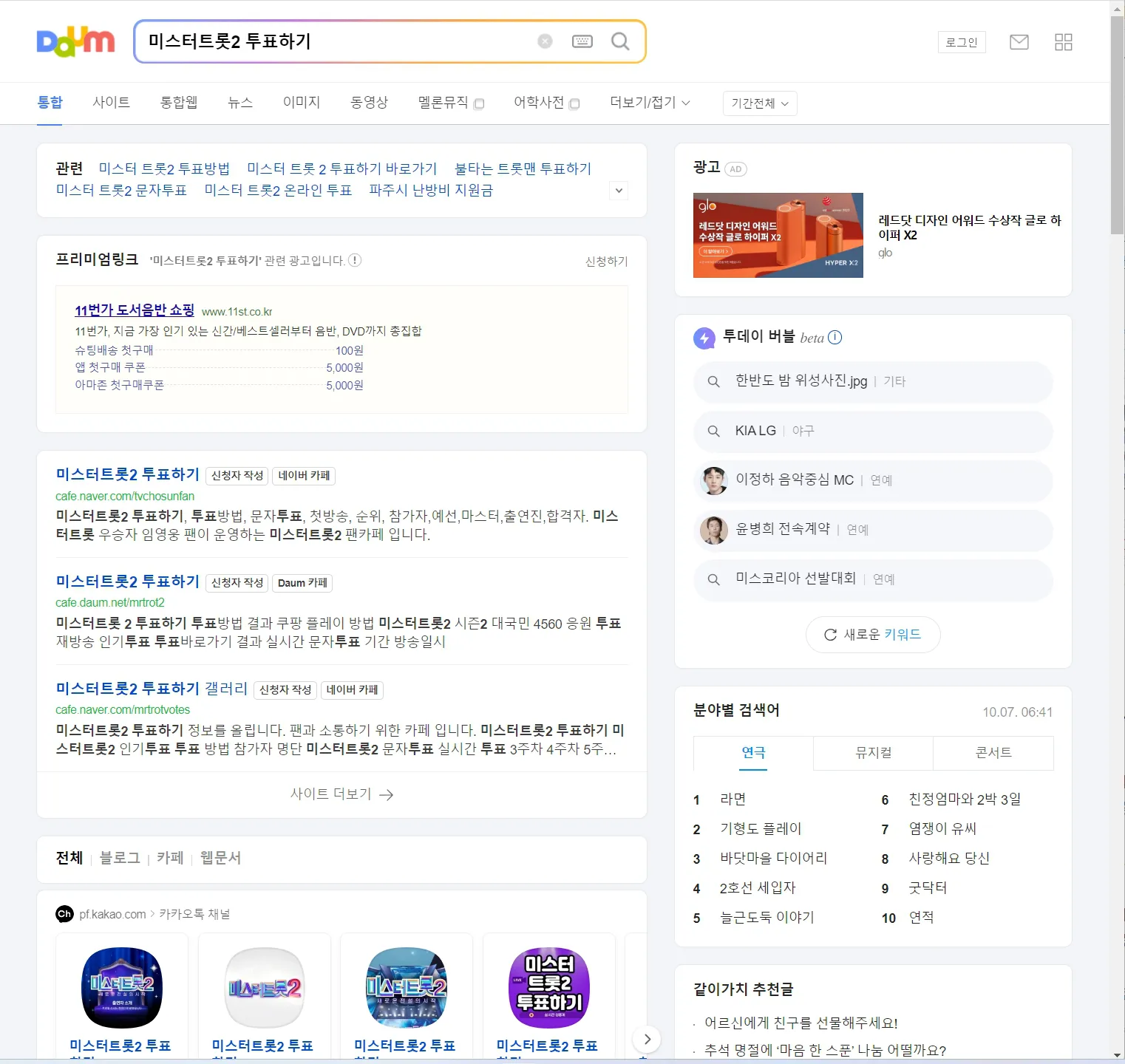 메인 키워드로 글을 잘 쓰지도 못할뿐더러 글을 잘 쓴다고 해도 방송사 홈페이지나 이 키워드에 돈을 사용하는 광고주보다 상위 노출이 될까요?