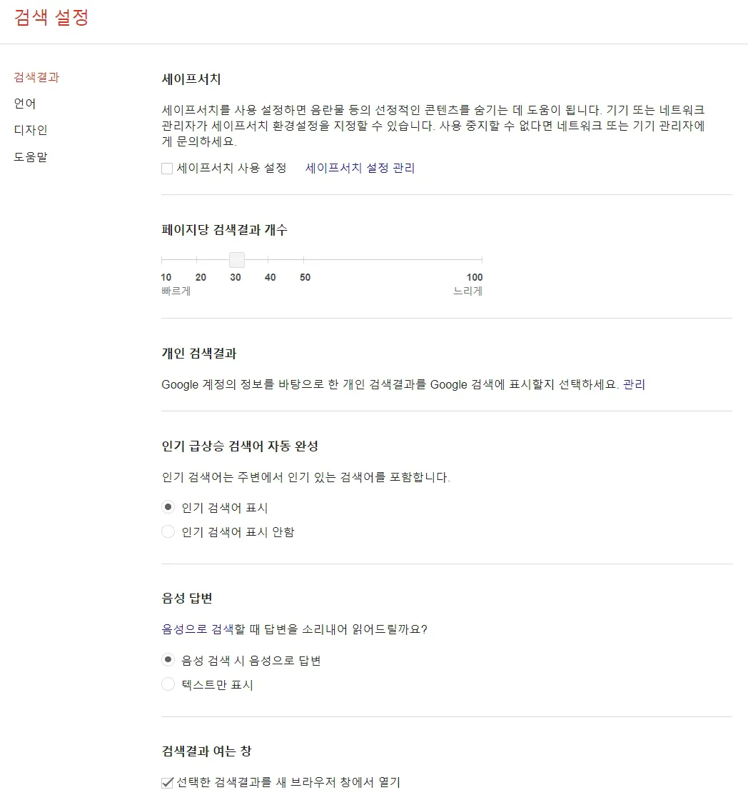 구글 검색 환경 설정