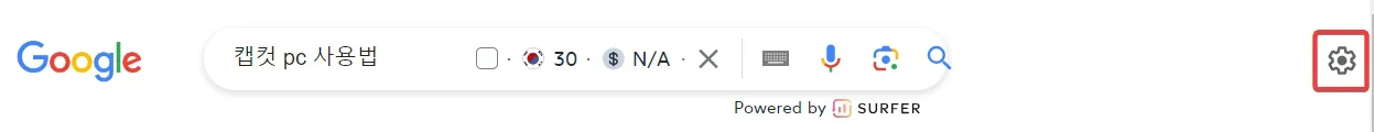 구글 검색 결과가 나오면 우측 상단에 톱니바퀴 모양의 [빠른 설정]이라고 있는데 이것을 클릭하세요.