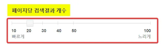 너무 많은 결과를 한 번에 보려면 검색 속도가 느려지니 20-30개 정도가 적당할 것입니다.