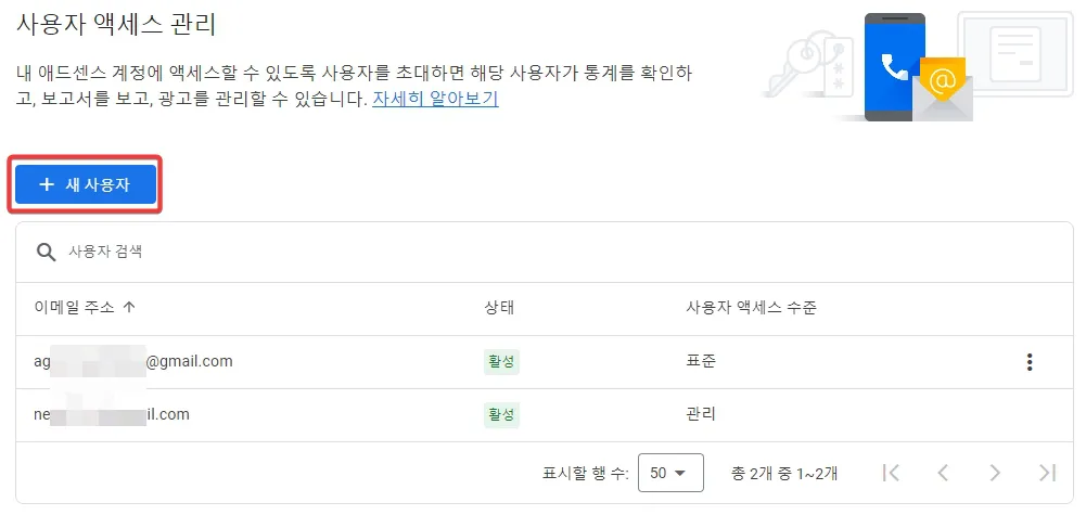 기존 애드센스에 연결 - 사용자 추가하는 방법