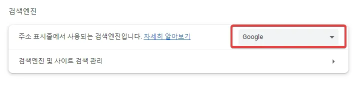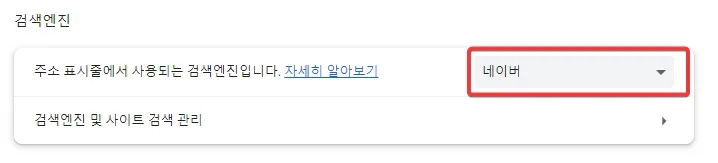 검색엔진 설정 변경 후 - 검색어는 주소 표시줄에 입력