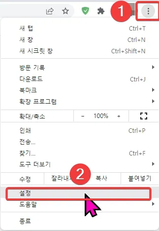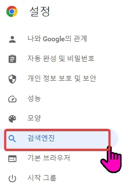 검색엔진 설정을 변경하기 위해서는 크롬 브라우저 우측 상단에 있는 점 3개를 눌러서 [설정]으로 이동 한 다음 [검색엔진] 설정을 변경하면 됩니다.