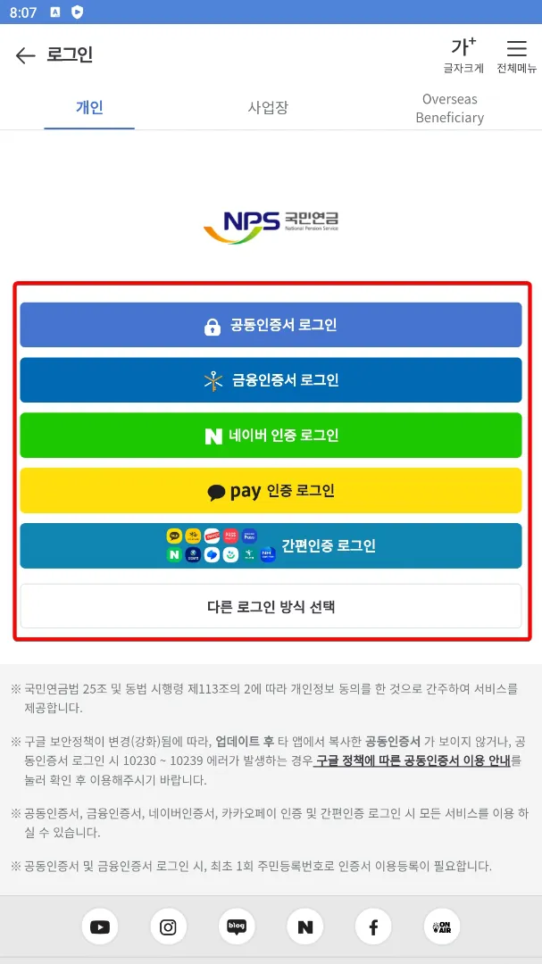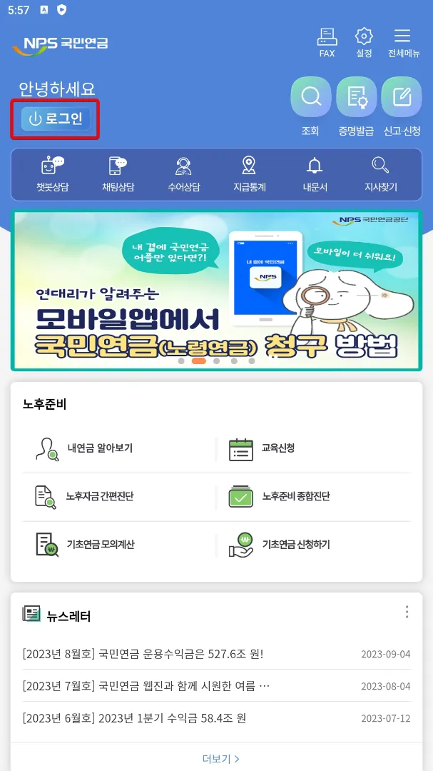 국민연금 모바일 앱 내 곁에 국민연금 로그인