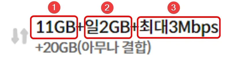 - 매월 제공되는 데이터와 1일당 제공되는 데이터를 모두 사용하면, 적용되는 QoS 속도