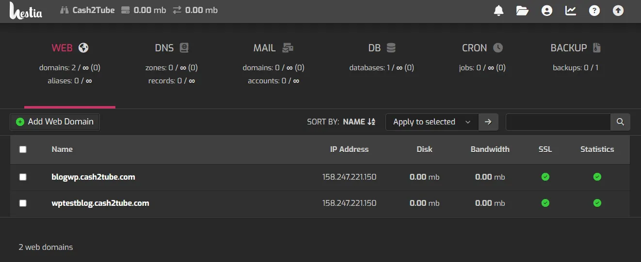 지금처럼 하나의 서버에 티스토리 블로그에서 승인받은 하위 도메인들을 추가로 설치하는 경우 Plesk 패널보다는 Hestia CP를 사용하는 것이 조금 더 유리한 측면이 있습니다.