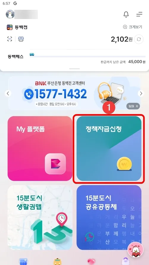동백전 앱에서 정책지원금 다자녀 교육지원 포인트 신청 방법