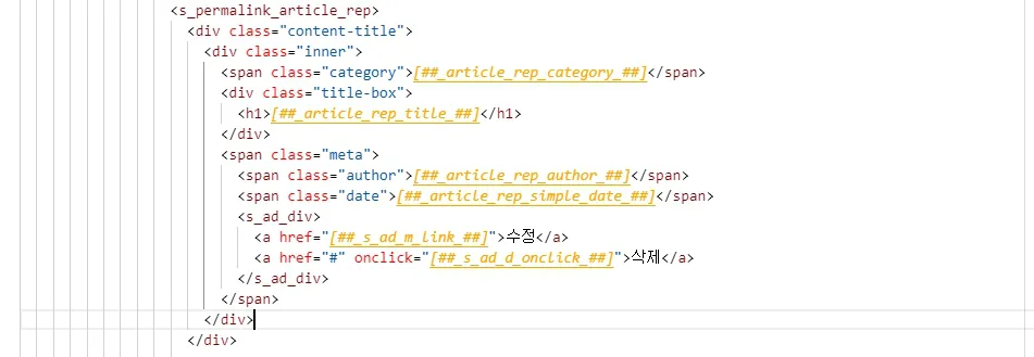 - <div class="content-title"> 코드 아래에 있는 HTML 코드가 카테고리, 제목, 수정, 삭제 등을 출력하는 코드입니다.