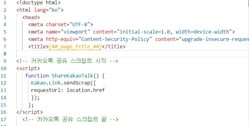 SNS 공유 버튼 추가 2단계 - HTML HEAD 영역에 자바스크립트 추가
