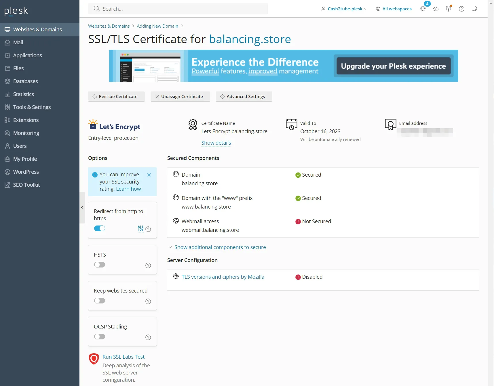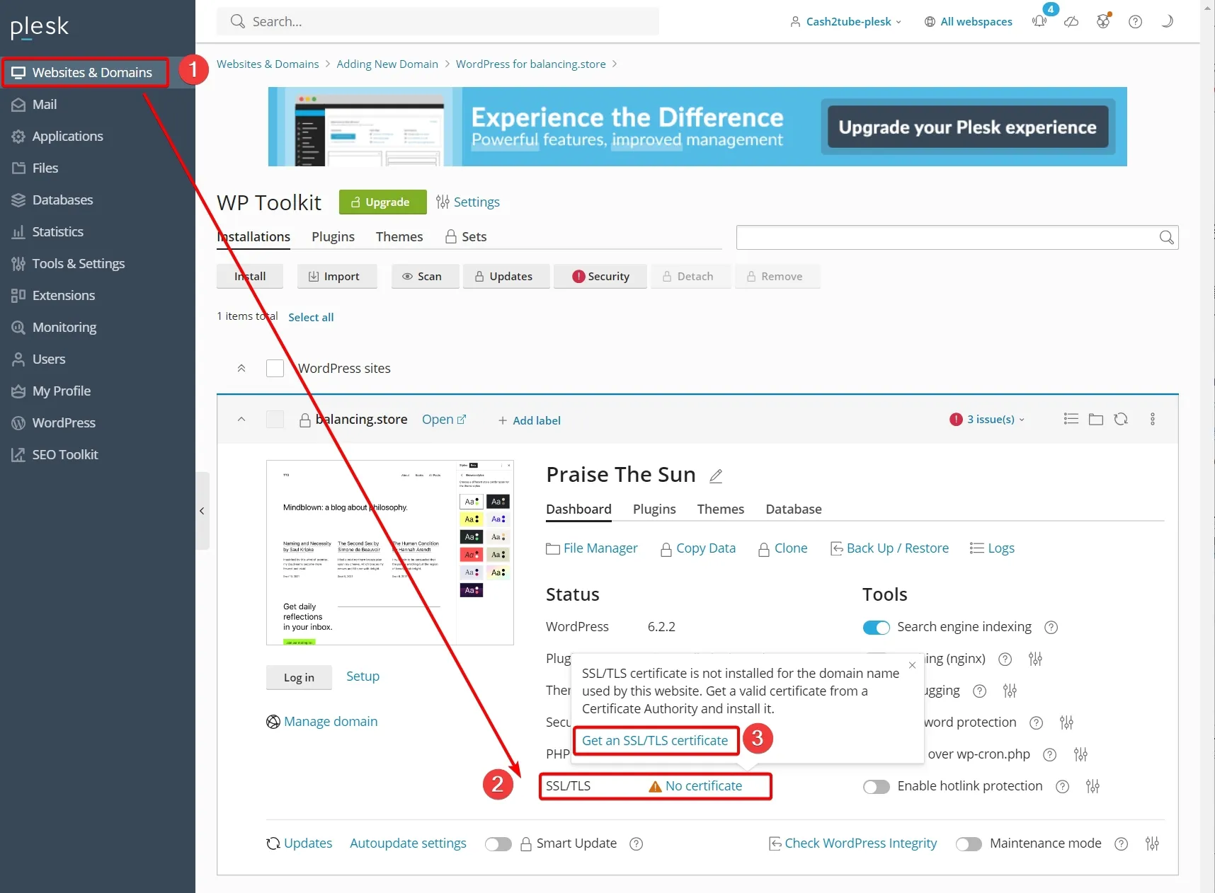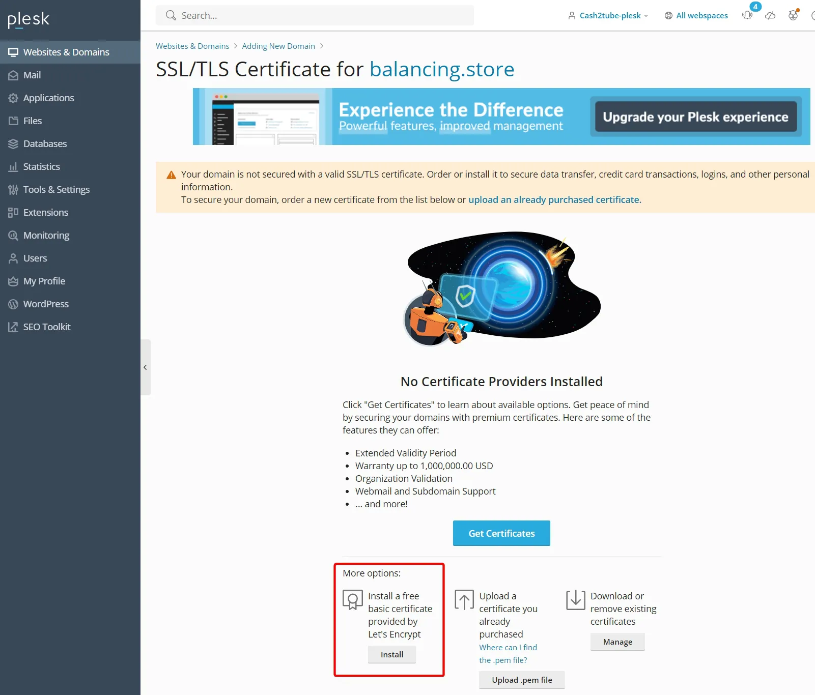 Plesk 패널에서 워드프레스 접속을 위한 무료 SSL 설치 방법