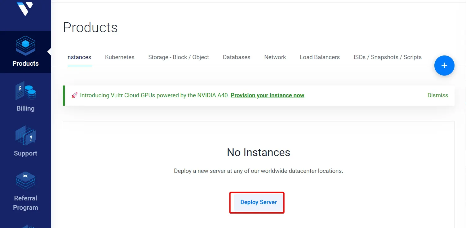 - Products에서 [Deploy Server]를 선택해서 워드프레스를 설치하고 운영할 서버 생성 시작