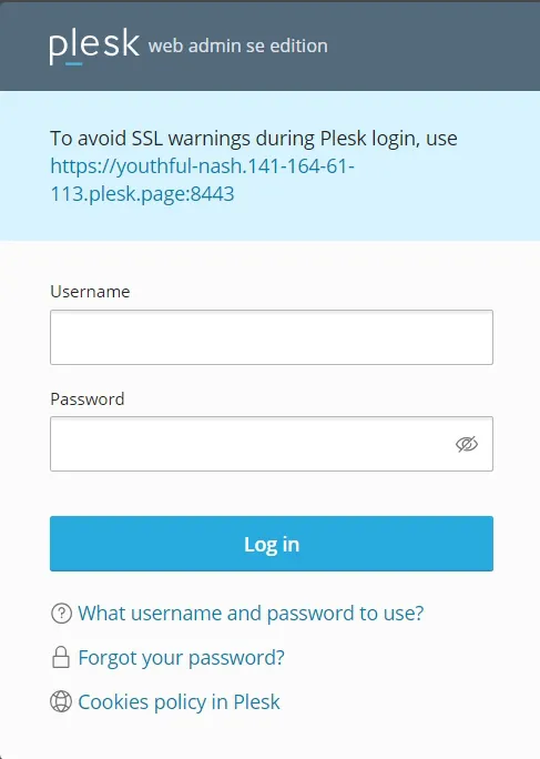 - 방금 만든 "plesk. 도메인" 접속용 주소 뒤에 :8443를 붙여서 접속합니다.