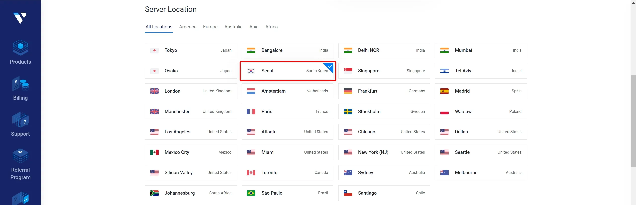 - Server Location(서버 위치) : Seoul, South Korea 선택