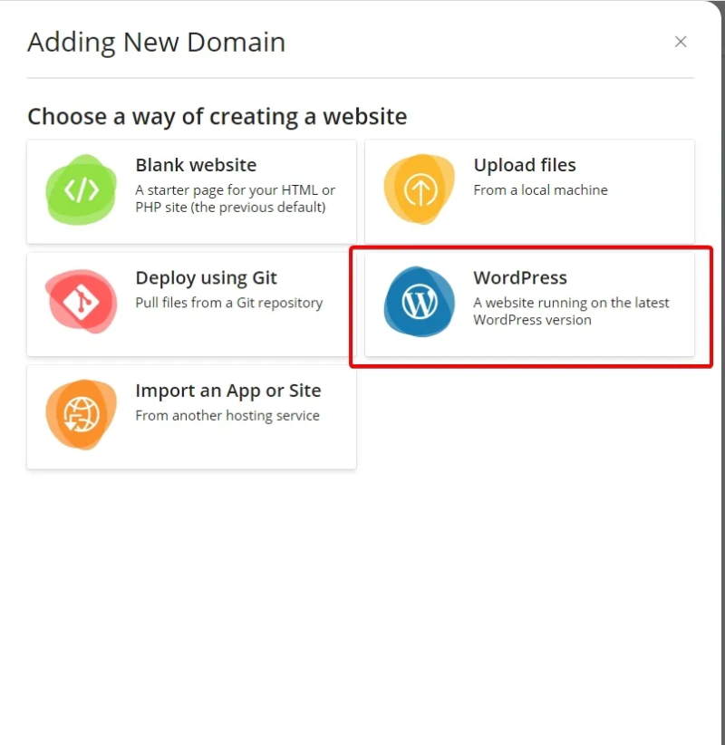 - + Add Domain를 선택해서 워드프레스를 설치 진행