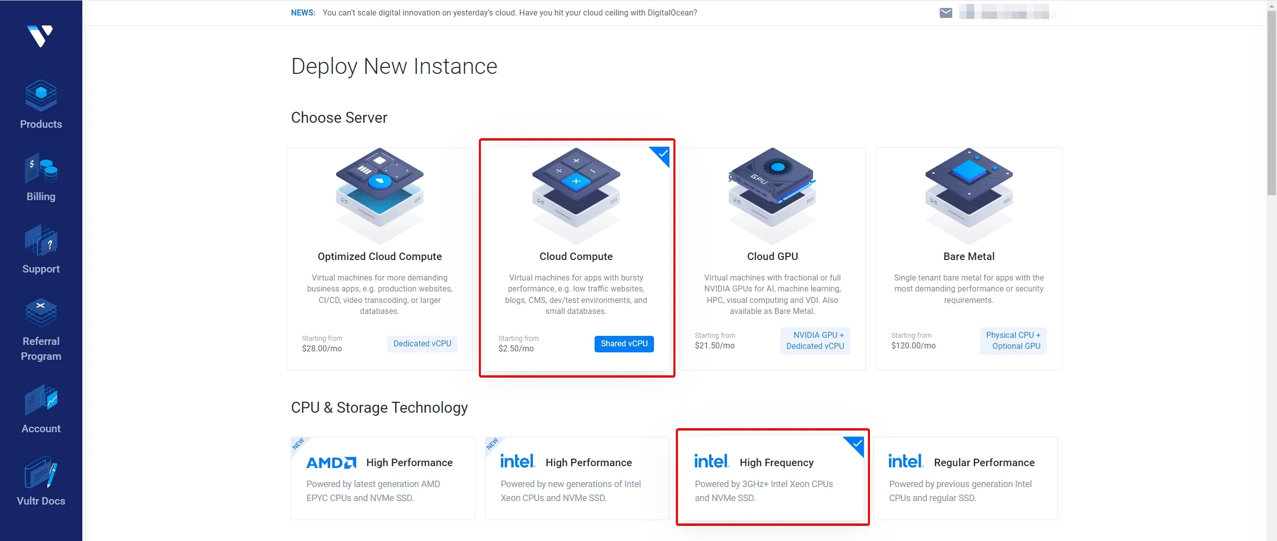 - Choose Server(서버 종류) : Cloud Compute 선택