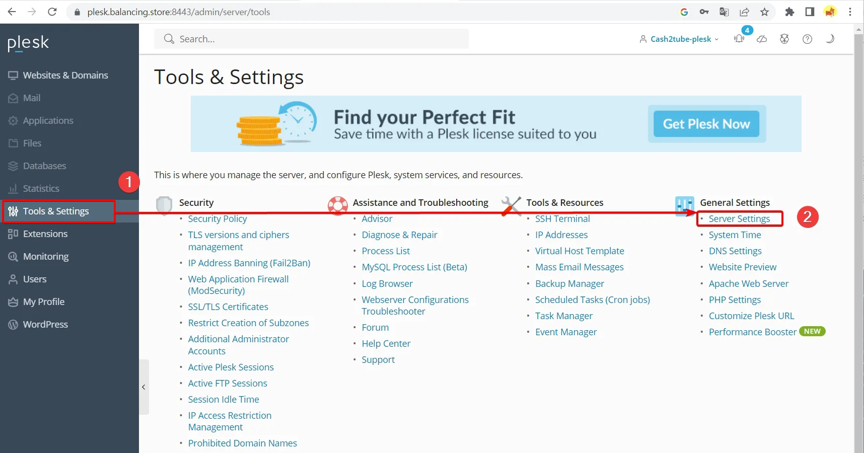 - Tools & Settings 페이지에서 General Settings 메뉴에 있는 Server Settings을 선택하고
