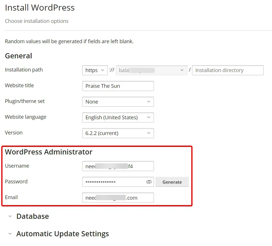 - Install WordPress 페이지에 나오는 아이디와 패스워드는 워드프레스 관리자로 로그인할 때 필요한 정보입니다. 반드시 메모장에 내용을 작성해 두세요.