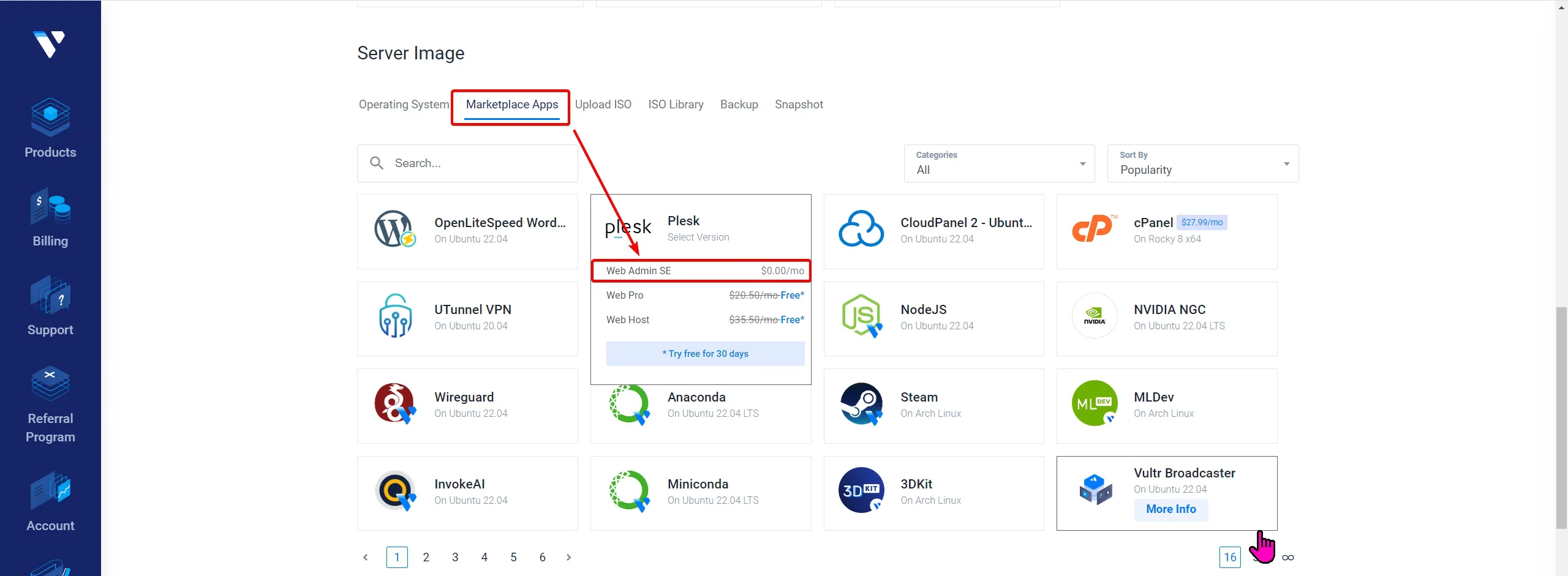 - Server Image(서버 운영체제) : Marketplace Apps - plesk - Web Admin SE 선택