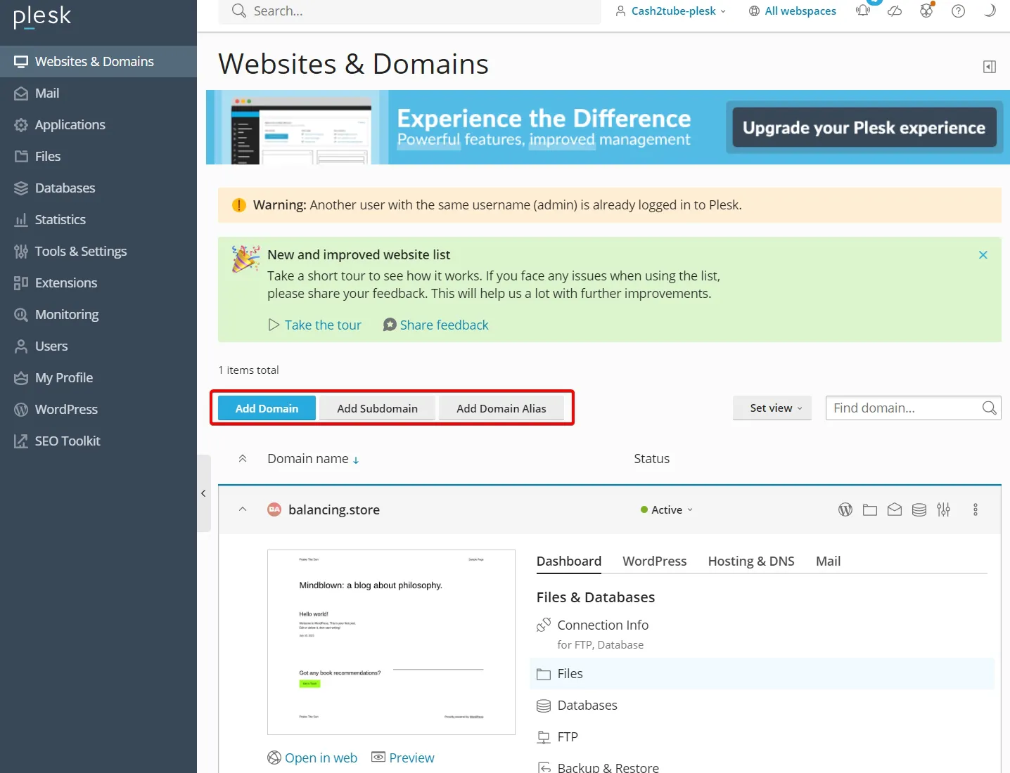 Plesk 패널에서 워드프레스 설치 방법