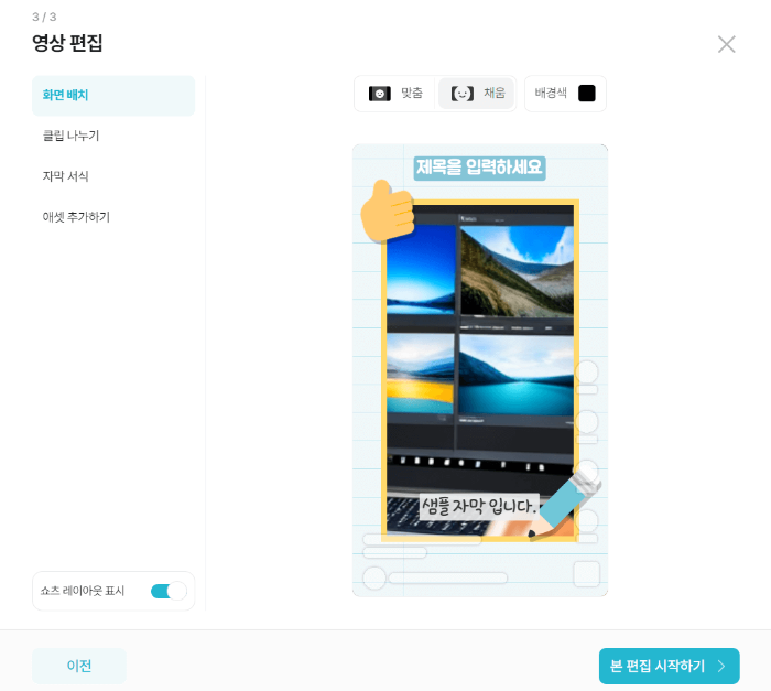제작하고자 하는 영상 스타일에 따라 다양한 영상 비율도 선택가능합니다.