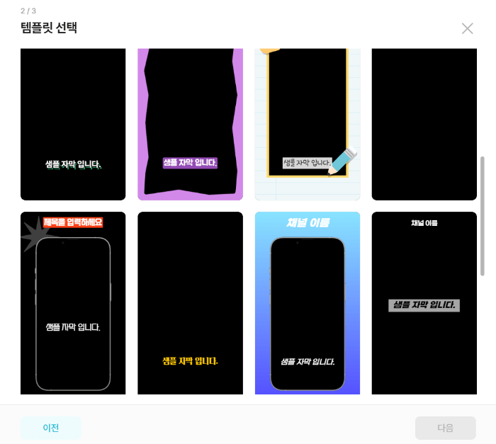 기존에 제작된 영상을 선택해서 브루(vrew)에서 제공하는 템플릿을 선택하여 쇼츠를 빠르게 제작할 수 있습니다.