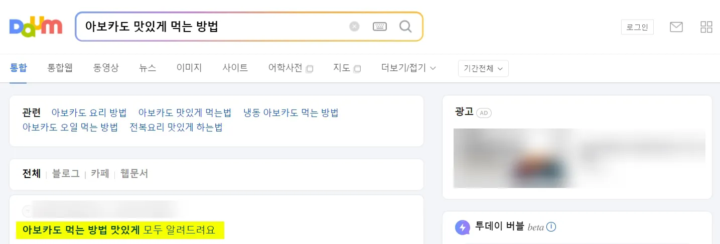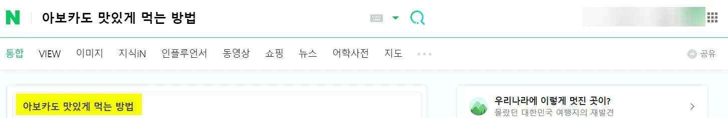 네이버, 다음에서 검색결과 #2 - 검색어 "아보카도 맛있게 먹는 방법" = 정보성 키워드
