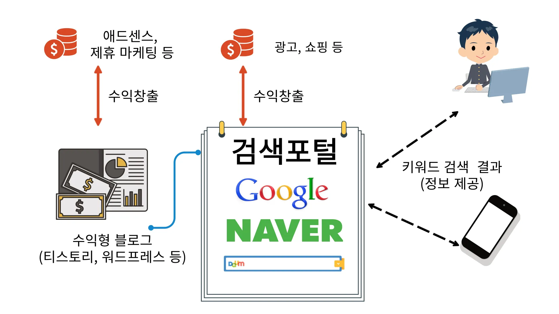 수익형 블로그 기본 상식 - 검색포털은 정보 제공을 기반으로 쇼핑, 광고 등을 판매