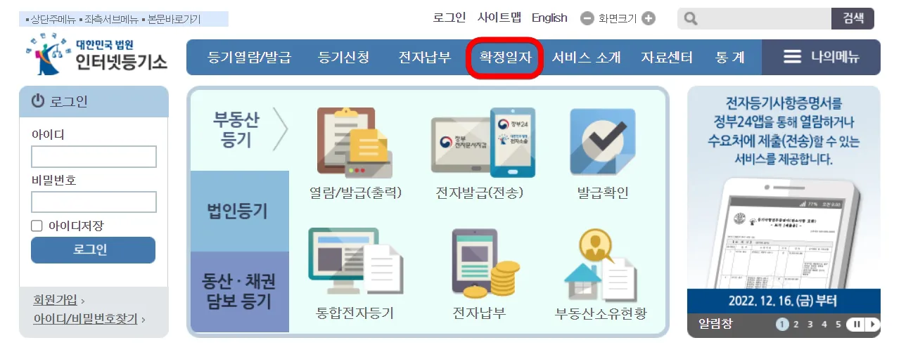 - 인터넷 등기소 홈페이지에 접속해서 회원으로 로그인, 비회원의 경우 회원가입 후 진행