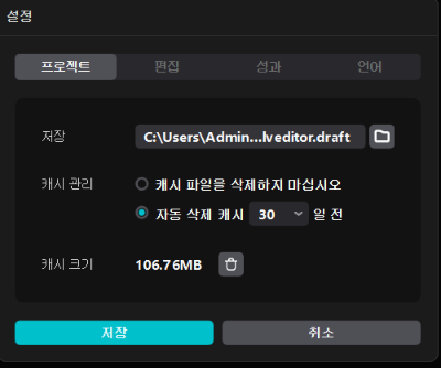 캡컷 프로그램에 사용하는 각종 효과들은 인터넷을 통해서 다운로드되고, 임시 파일 형태로 저장됩니다.