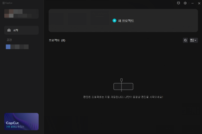 새 프로젝트를 선택하시면 영상 편집을 할 수 있는 화면으로 넘어갈 수 있습니다.