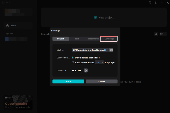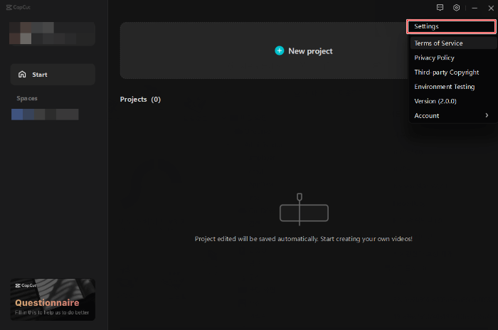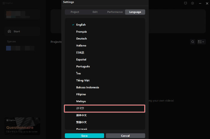 초기 설정은 캡컷 설정 페이지에서 진행합니다.