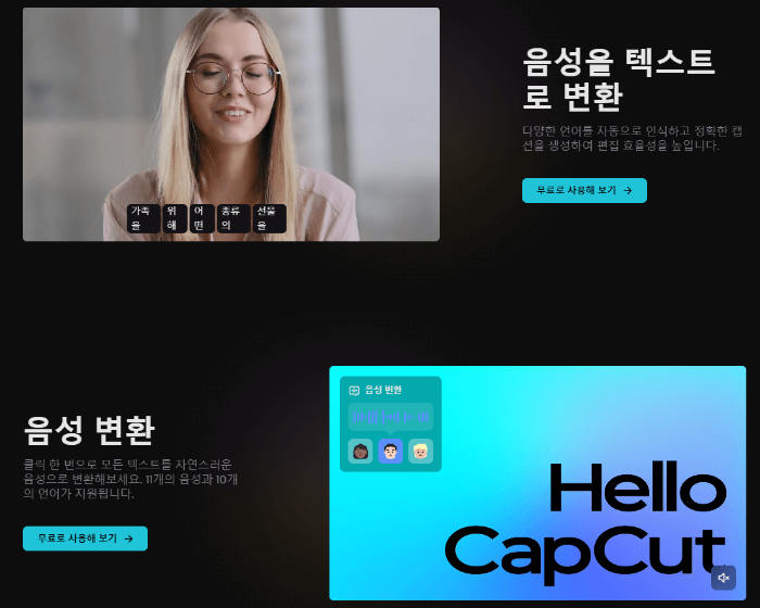 캡컷은 매우 강력한 편집 프로그램입니다. 한 번에 소개하기 힘들 정도로 많은 기능이 포함되어 있어서, 이번 포스팅에서는 홈페이지 초기에 보여주는 기능에 대해서 간략하게 소개하고 마무리하겠습니다.