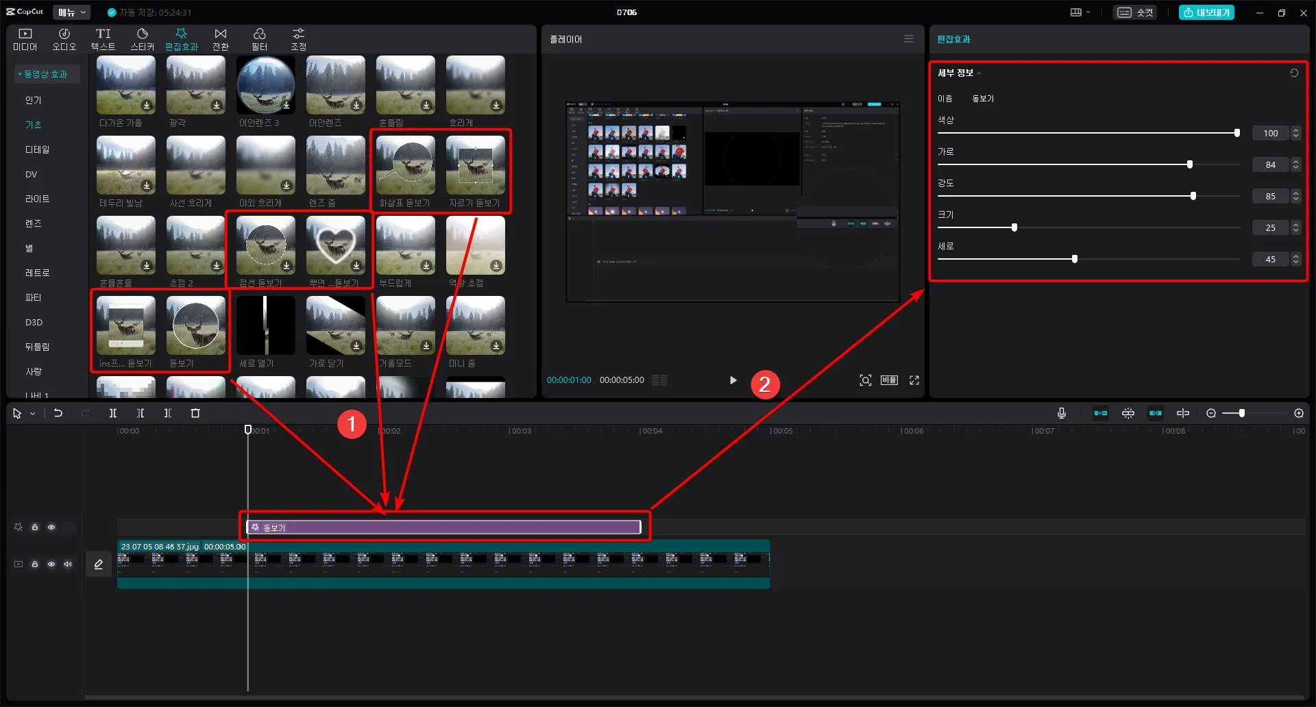 편집효과 - 돋보기 사용해서 확대하는 방법