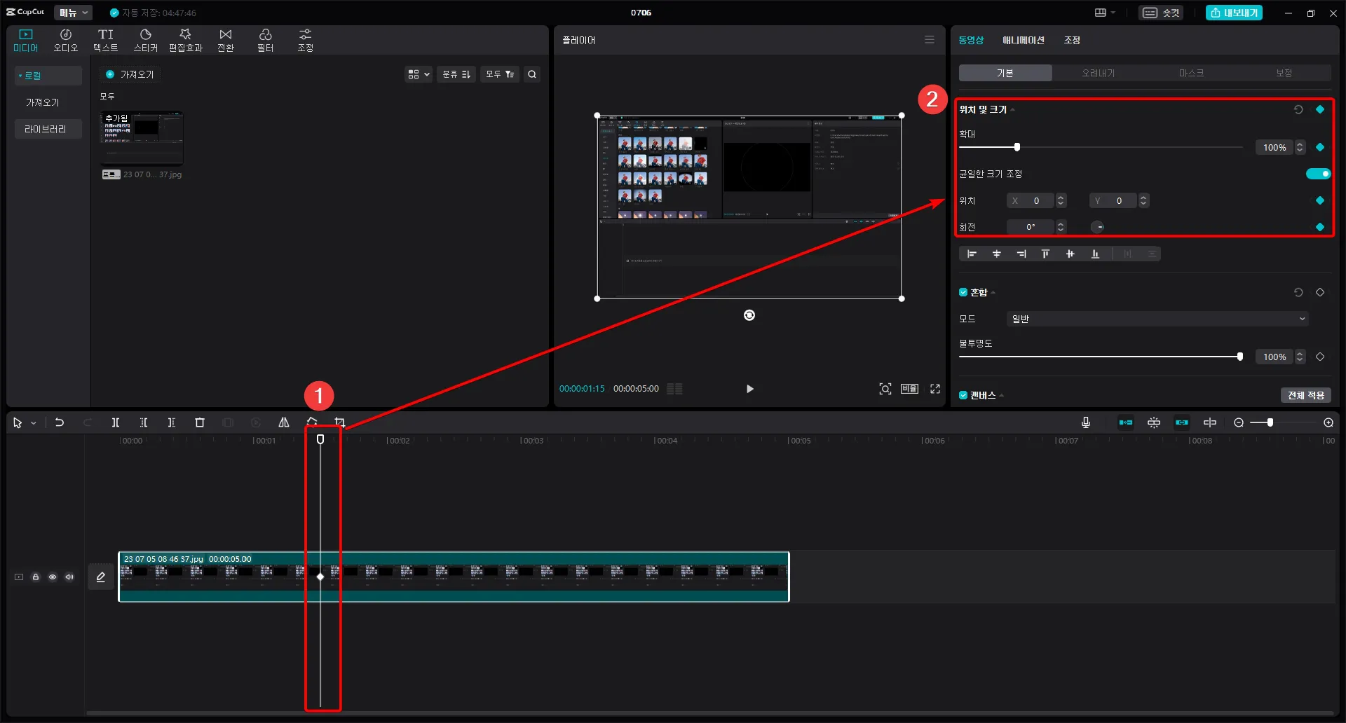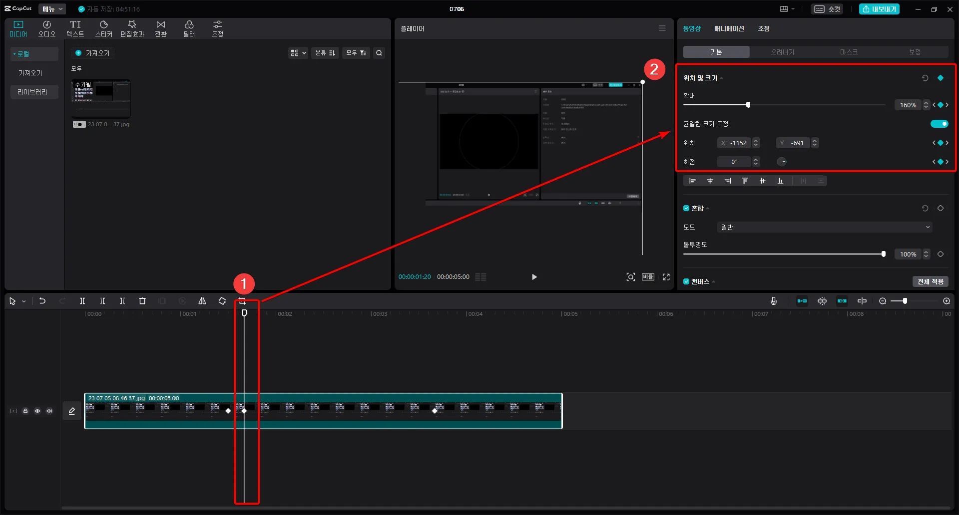 캡컷(capcut) pc 프로그램을 이용하여 영상을 만들다 보면 잠시 특정한 부분을 크게 보이도록 확대해서 보여주고 싶을 때가 있습니다.