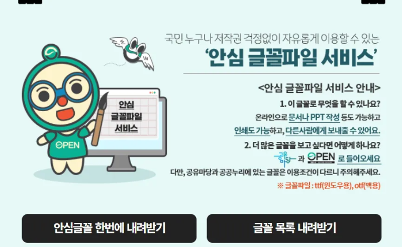 공공누리 - 안심 글꼴파일 서비스 : 출처 표기 + 상업적 이용 가능