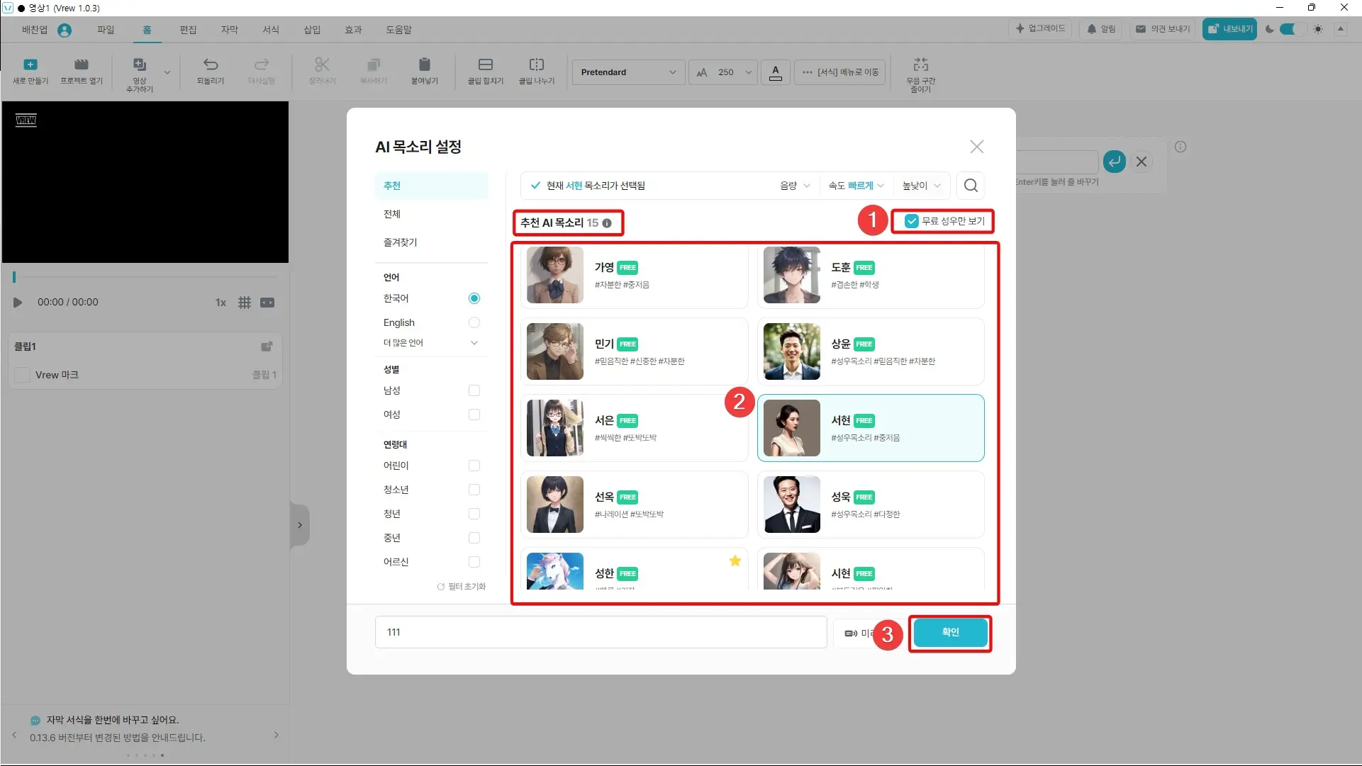 브루(vrew)가 부분 유료화로 전환하였지만 현재 15개의 무료 목소리를 무한대로 사용할 수 있습니다.