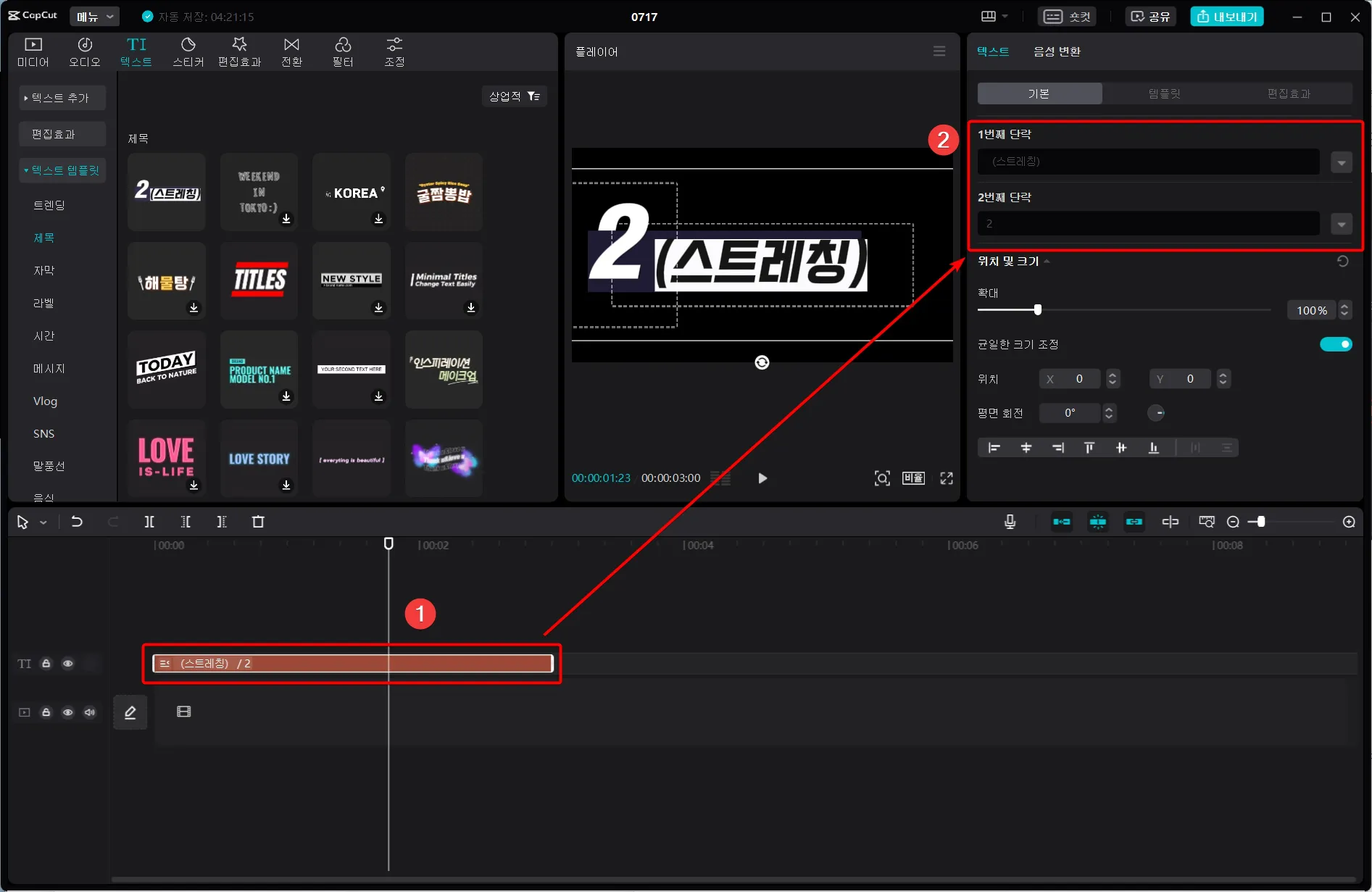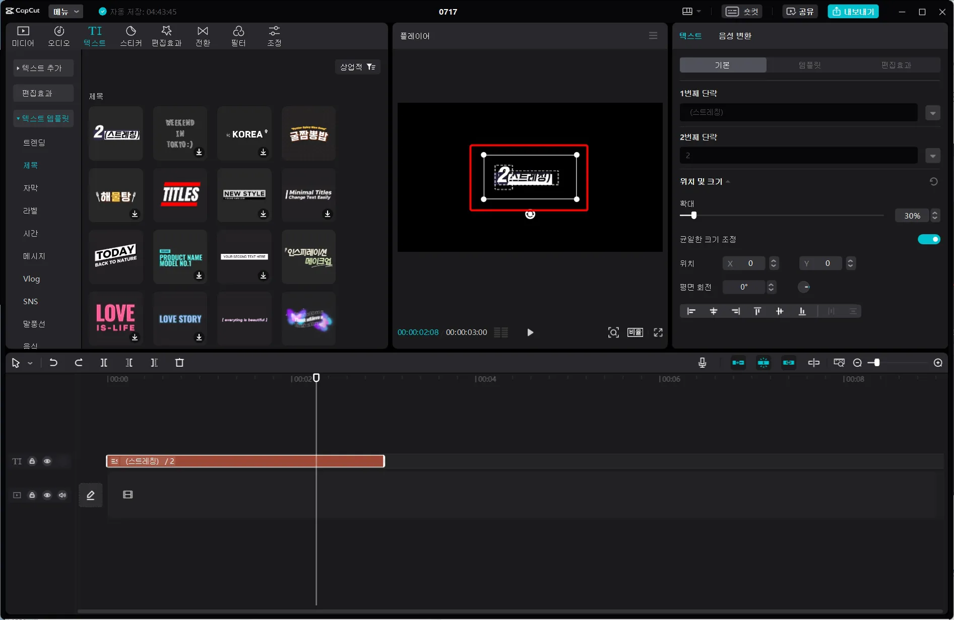 지금까지 캡컷(CapCut)에 있는 텍스트 템플릿을 타임라인에 추가, 크기 조절, 폰트 변경 등을 하는 방법에 대해서 알아보았습니다.