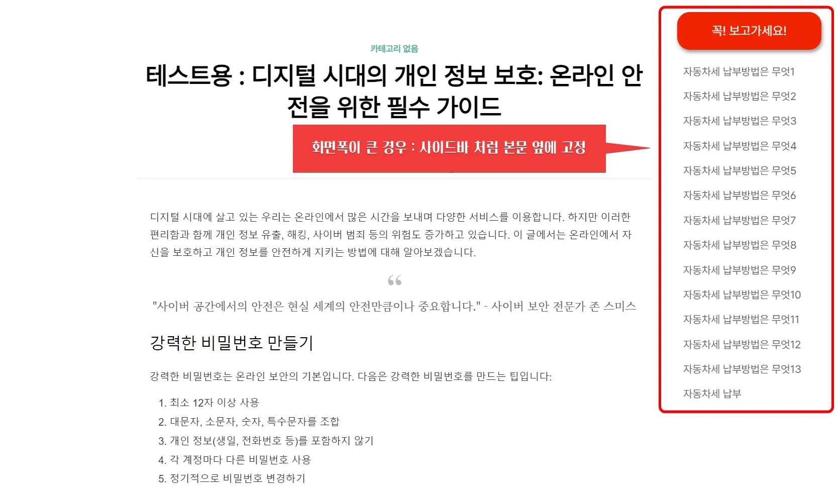 - 화면폭이 큰 경우 : 사이드바처럼 본문 옆에 고정