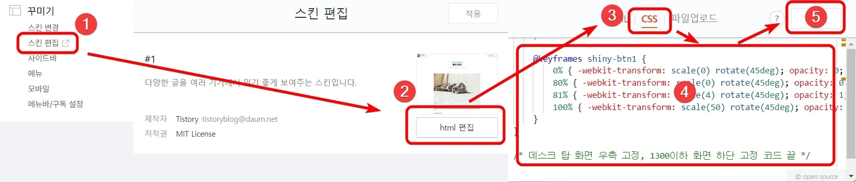 Step 1. 티스토리 스킨에 CSS 코드 등록