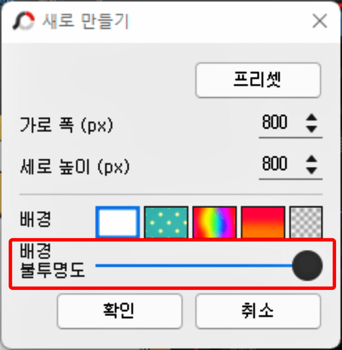 기존 이미지의 배경을 제거해서 투명 배경 이미지를 만들 수 있으며, 새로 만들기(단축키 : 컨트롤 + n)를 선택해서 새로운 투명 배경 이미지를 만들 수 있습니다.