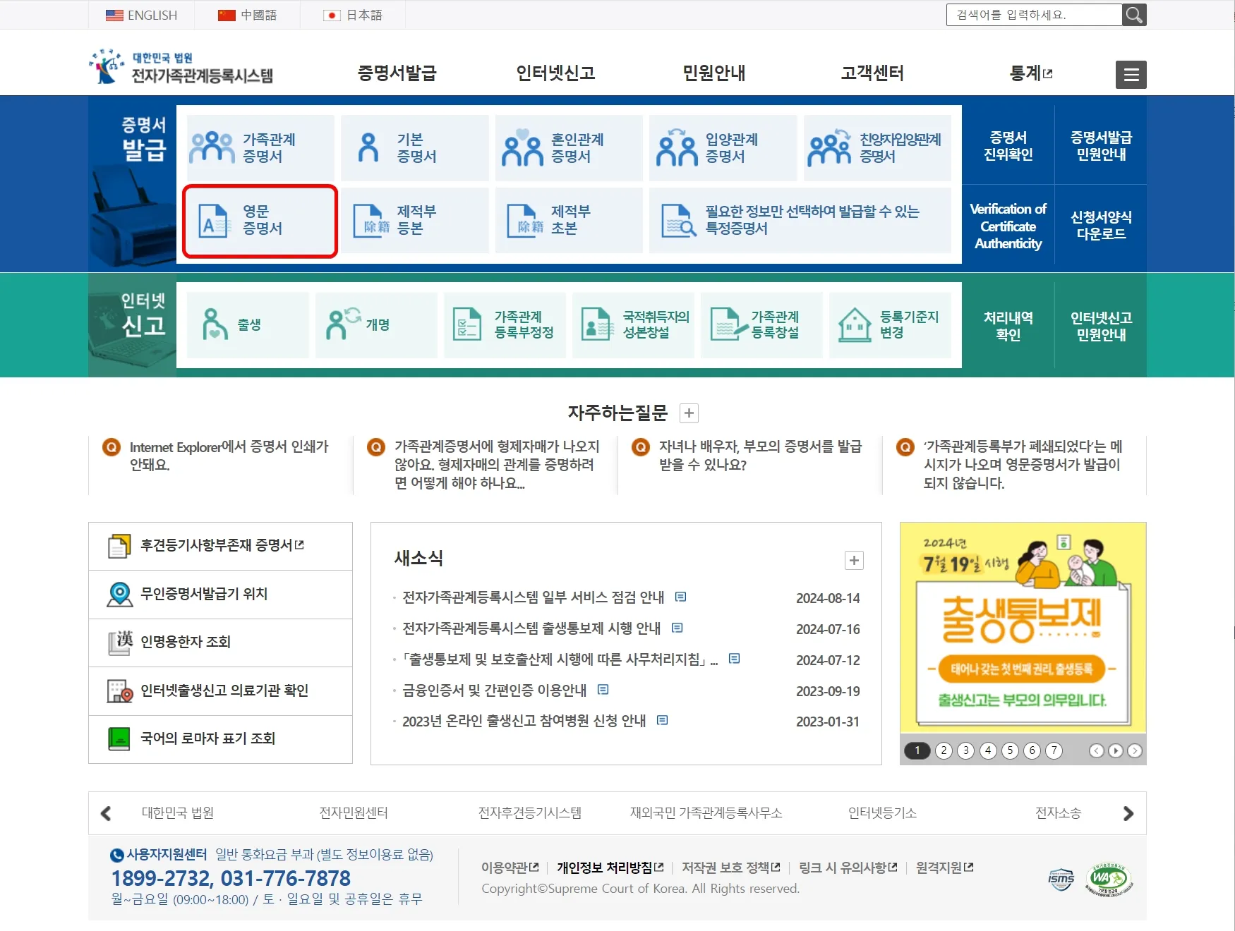 영문 가족관계증명서 인터넷 발급 방법