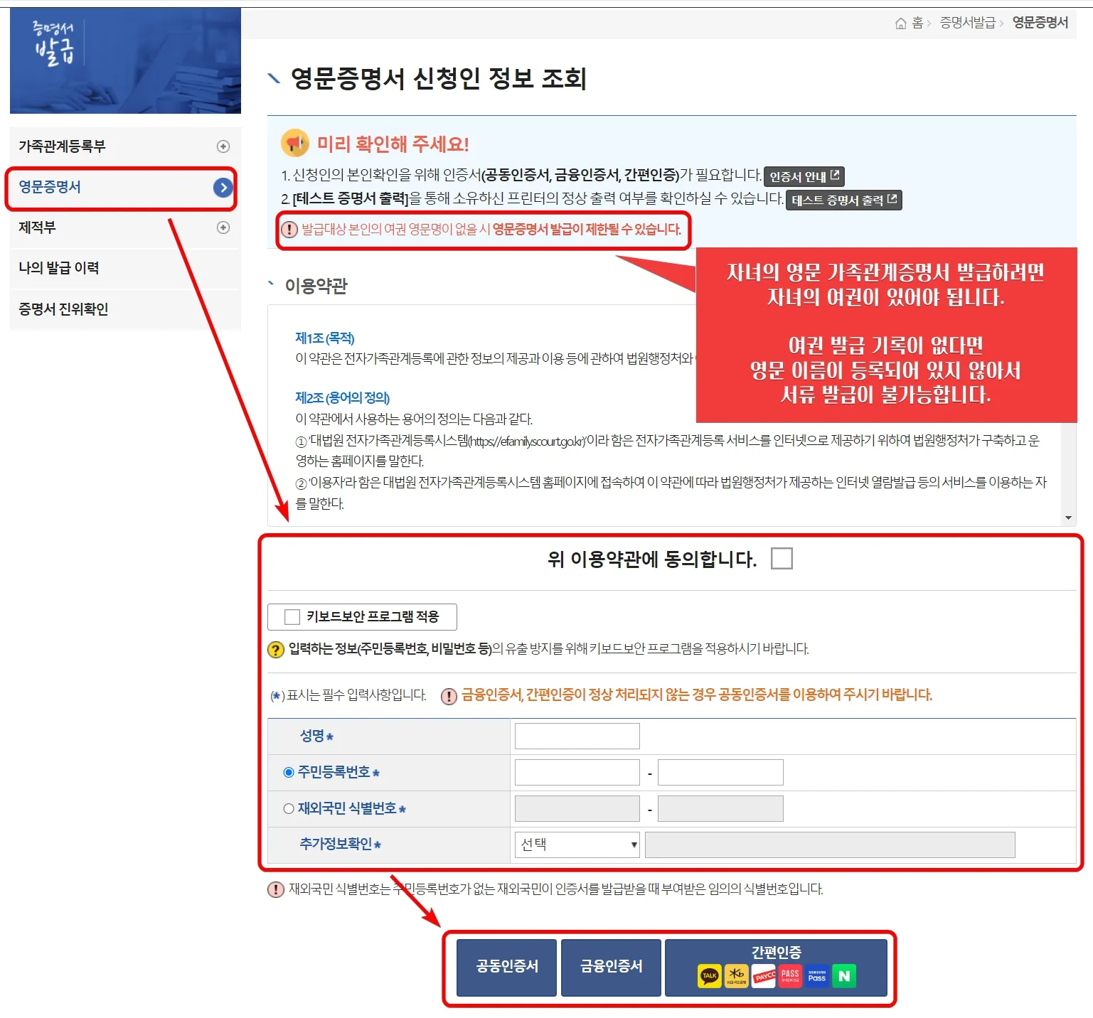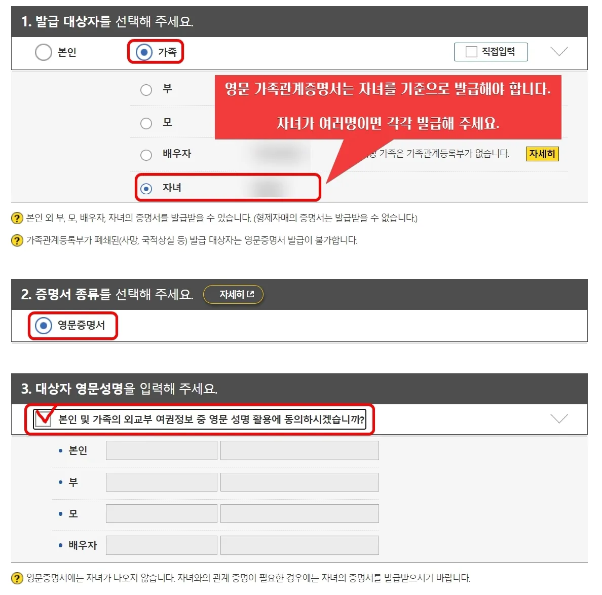 영문 가족관계증명서 발급 시 주의사항