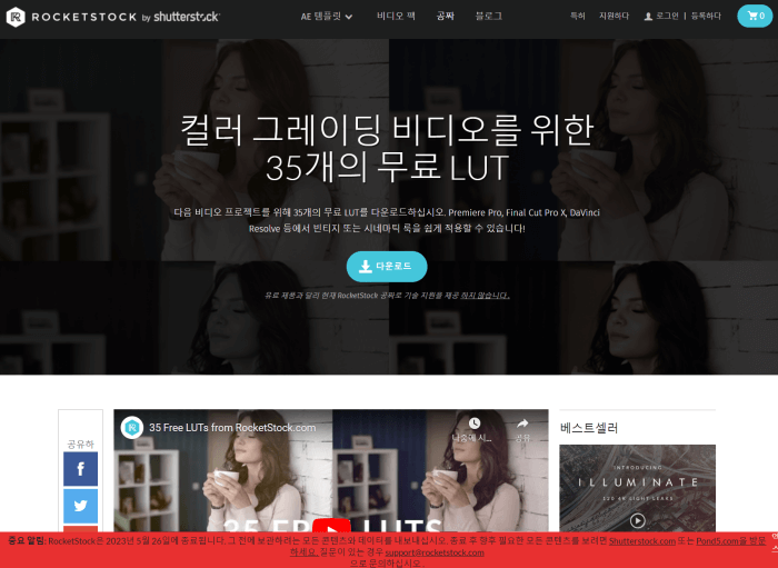 Shutterstock에서 제공하는 무료 LUT 다운로드 링크는 2가지가 있습니다.