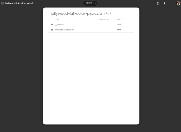 해당 페이지를 방문해서 아래로 조금만 내려가면 다운로드 링크가 있습니다. 2기 정도 되는 압축 파일 안에 lut 폴더가 있습니다.