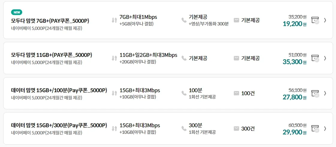 모두다 맘껏 11GB+(네이버페이) : 월 35,300 원