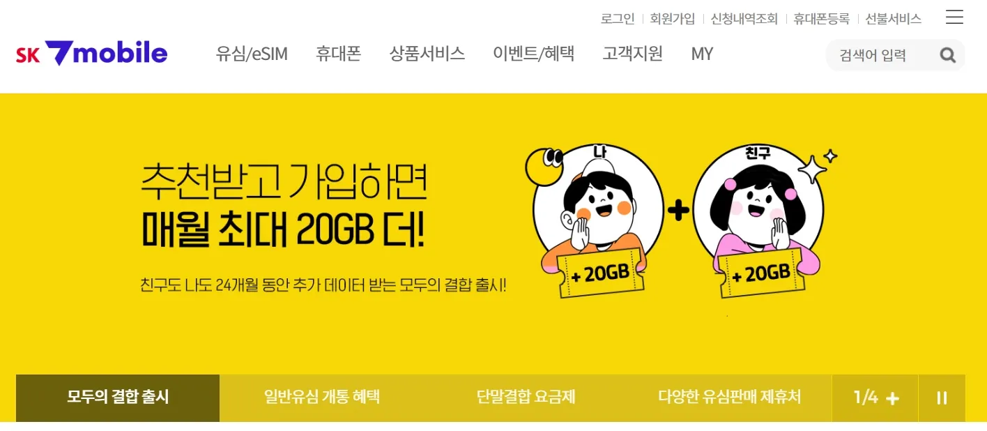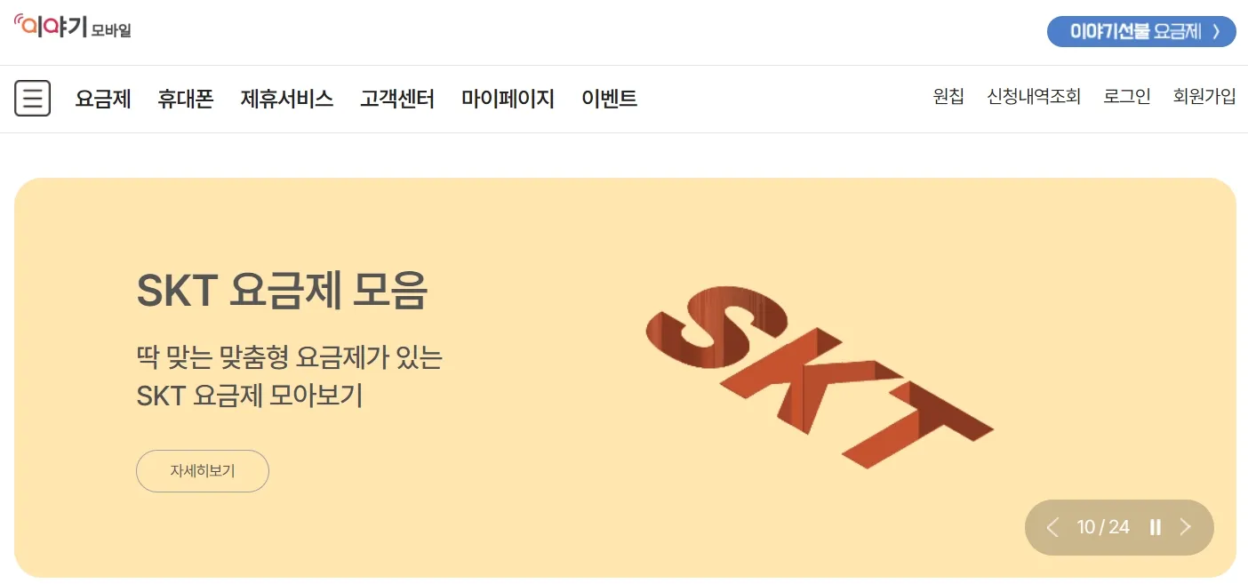 가입자 유치를 위해 일정기간 할인을 많이 해주는 이벤트 요금제부터 SK브로드밴드 인터넷 및 IPTV 결합도 가능합니다.