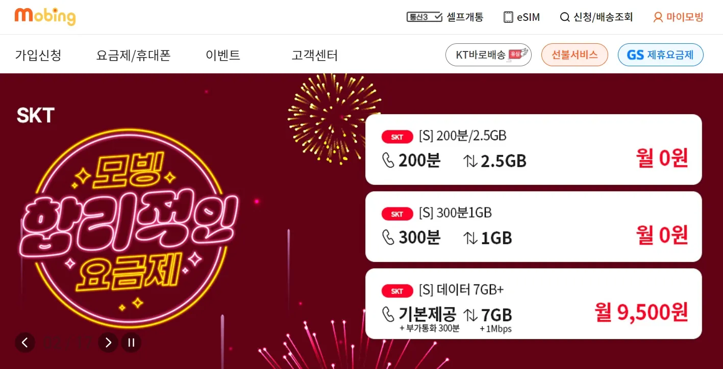 모빙은 유니컴즈에서 운영하는 알뜰폰 통신사로 이동통신 3 사망을 모두 서비스하고 있습니다. 가입자 유치를 위해 일정기간 0원으로 이용할 수 있는 이벤트 요금제도 있습니다.