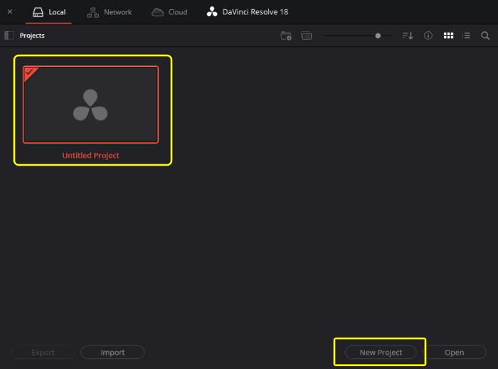 프로그램이 시작되고 프로젝트 매니저(project manager)에서 새 프로젝트(new project) 또는 이름 없는 프로젝트(untitled project)를 선택합니다.