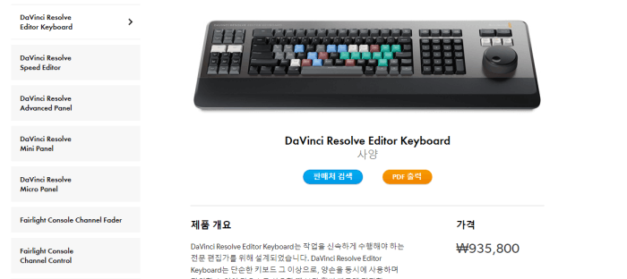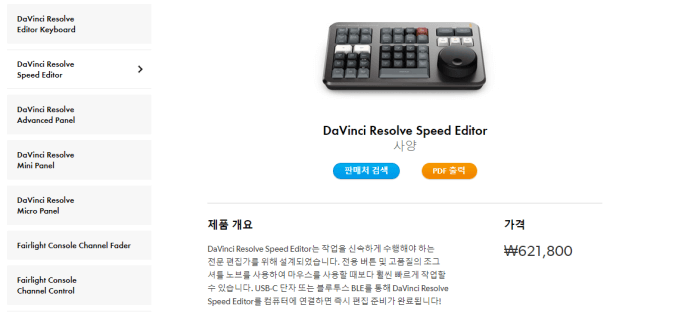 | 다빈치 리졸브 스피드 에디터 (DaVinci Resolve Speed Editor) |