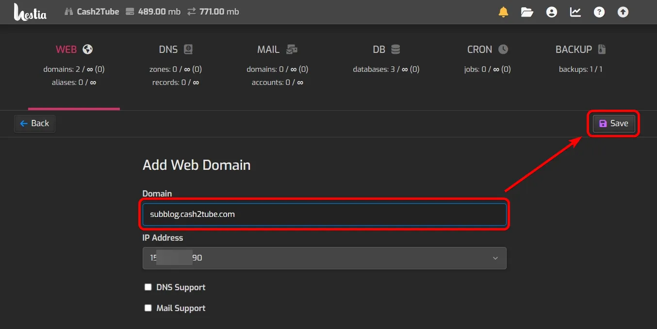 HestiaCP에서는 A 레코드, CNAME 레코드 모두 인식이 잘 되고, 연결 방법도 간단합니다. 하위 도메인 연결은 CNAME 레코드를 사용하는 것을 권장합니다.